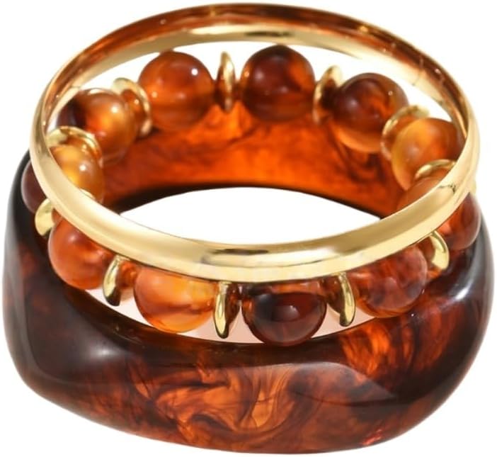3Pcs Chunky Gold Bangles Bracelets for Women Resin Beaded Bracelets Irregular Layered Bracelets Set Lightweight Boho Beach Fashion Jewelry Accessaries