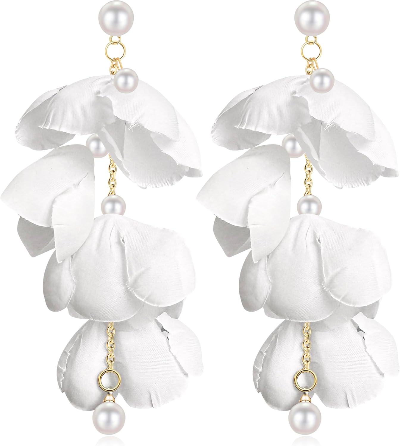 Handmade Bohemian Pearl Fabric Flower Dangle Drop Earrings Lightweight Summer Floral Stud Earrings For Women