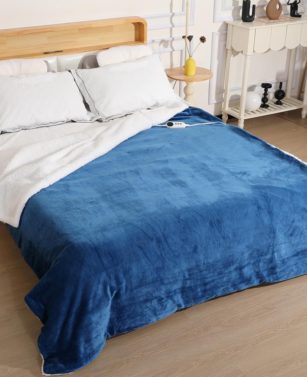 Electric Heated Blanket Full 72"x84", Ultra‑Soft Flannel & Sherpa Heating Blanket, Fast Heat & Even Heat Distribution, 9 Temps (80–109°F), 2-10H Auto‑Off, House Warming Gifts, Blue