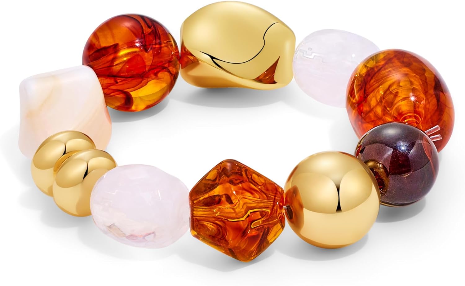 Chunky Beaded Bracelets for Women Trendy Boho Acrylic Resin Beads Stretch Bangle Bracelet Vintage Statement Bracelet Summer Jewelry