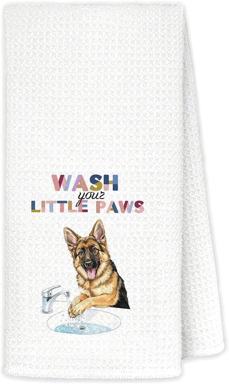 Cute German Shepherd Bathroom Hand Towels, Dog Bathroom Decor, German Shepherd Lover Gifts Decorative Hand Towels for Kids Bathrooms, Funny Dog Kitchen Towels, 16x24 Inch