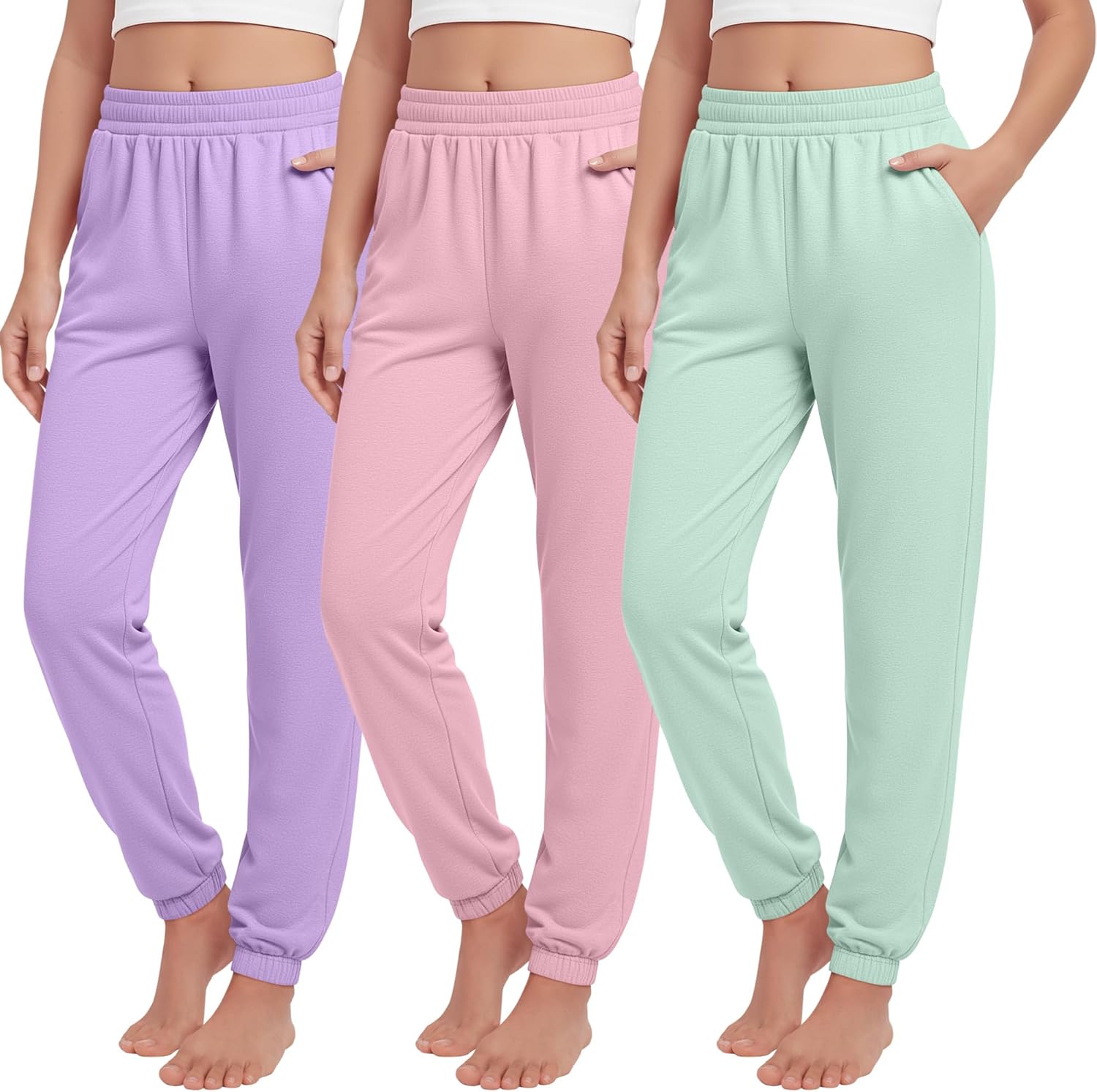 3 Pack Girl's Lounge Joggers Soft Lightweight Sweatpants Elastic Waist Jogger Pants Active Pants with Pockets