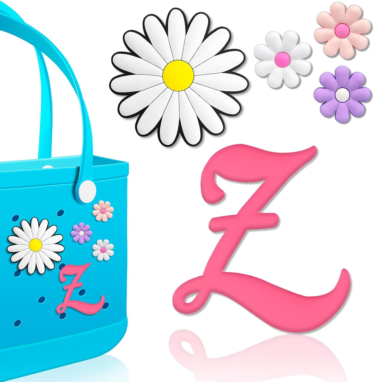 Hikkcos 5 Pcs Letter Charms for Bog Bag Accessories - Clips, Insert, Charm Decorative Alphabet for Handbag, Beach Tote, Simple Modern Beach Bag, Rubber Tote
