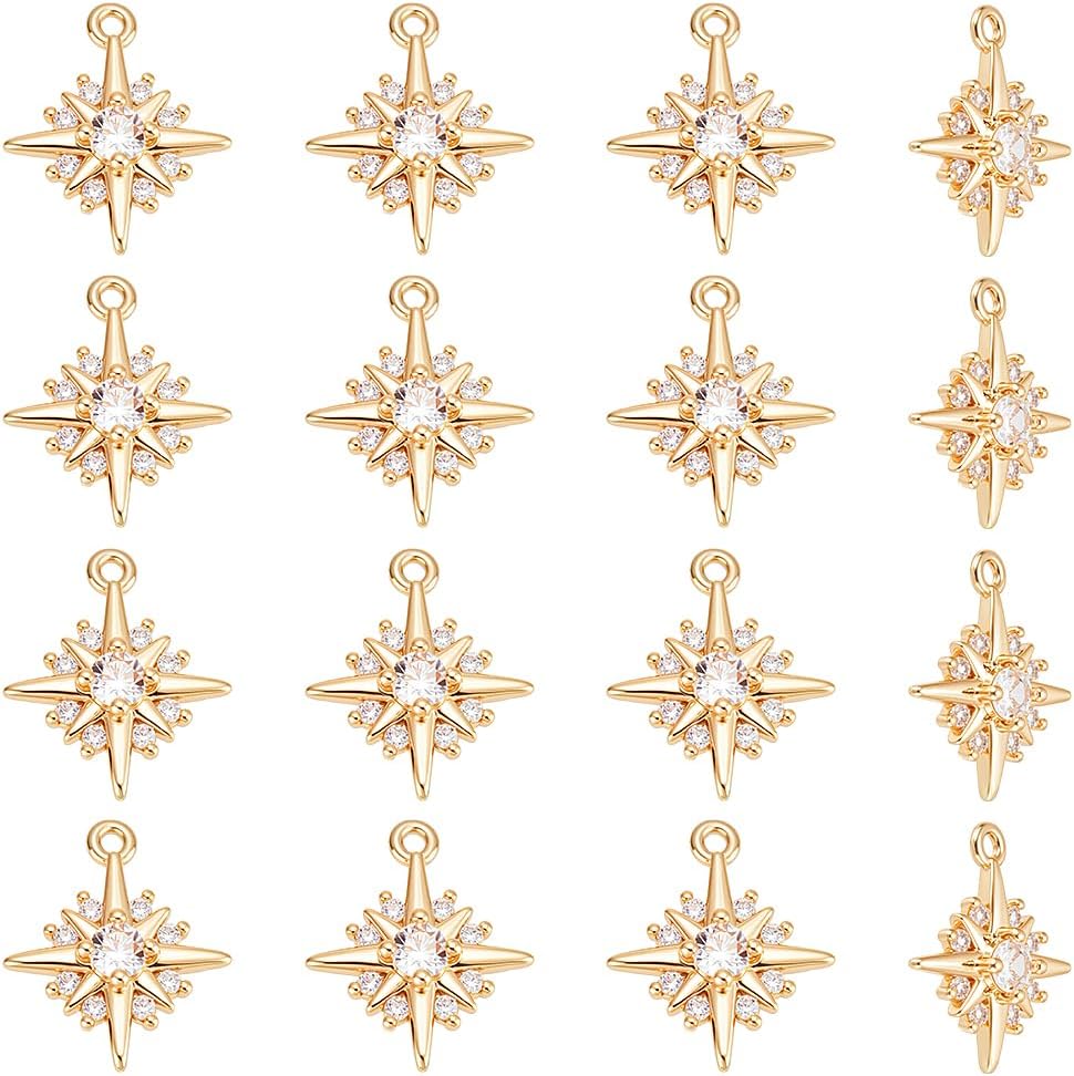 UNICRAFTALE 16Pcs Star Charms Real 18K Gold Plated Crystal Rhinestone North Star Charms Rhinestone Earring Dangle Charm Metal Bracelet Mkaing Charm for Necklace Jewelry Making