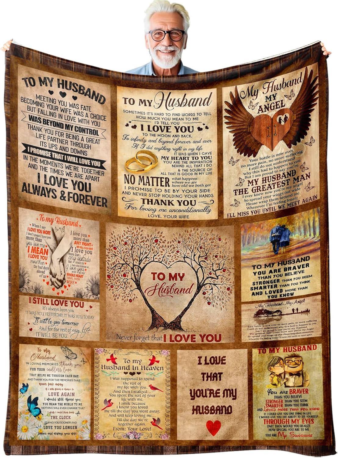 to My Husband Flannel Anniversary Blanket - 60"X50" Romantic Gift for Him, Life Partner Keepsake for Fathers Day, Christmas Birthdays, Cozy Love Throw