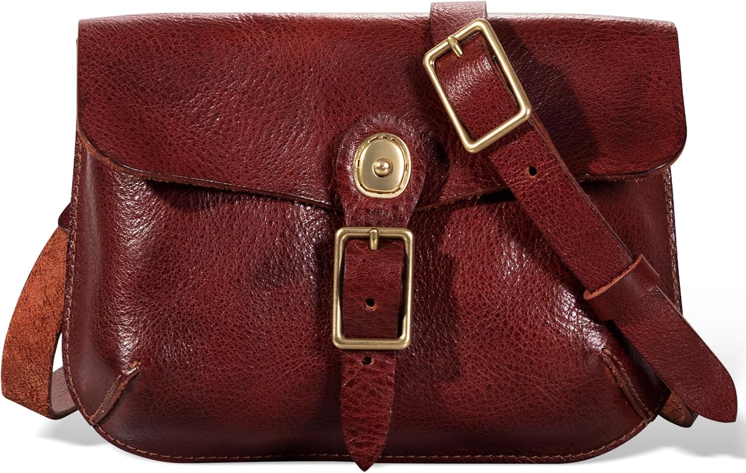 Genuine Leather Cross Body Bag for Women Men, Vegetable-Tanned Leather, Adjustable Strap,Pure Brass