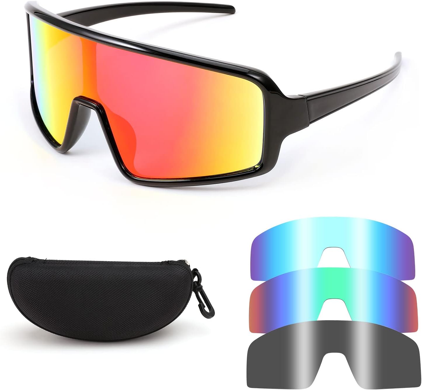 WANWAN Cycling Sunglasses with 4 Lenes for Men Women Large Frame Sport Sunglasses Baseball Golf Fishing Running