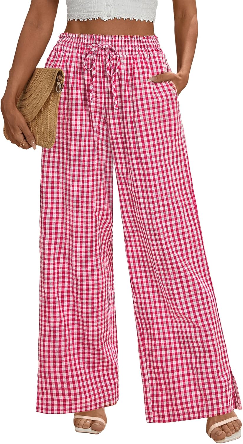 Rapbin Wide Leg Pants Woman Palazzo Pants High Waisted Drawstring Spring Summer Casual Flowy Trousers with Pockets
