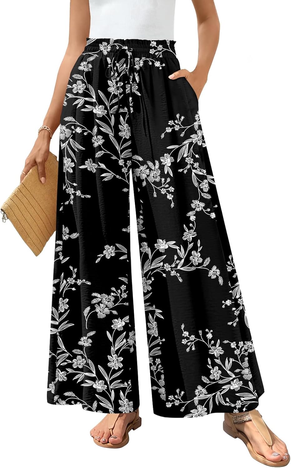 Bestbee Palazzo Pants for Women Dressy Casual Wide Leg Slacks Elastic Waist Outfits Flowy Pant with Pockets