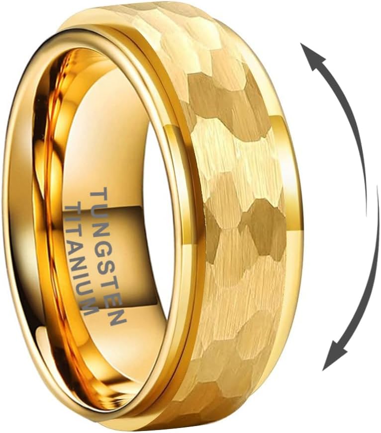 8mm Silver/Black/Gold Spinner Tungsten Titanium Fidget Rings for Men Women Anxiety Released Hammered Design Engagement Wedding Band Stepped Edges Comfort Fit