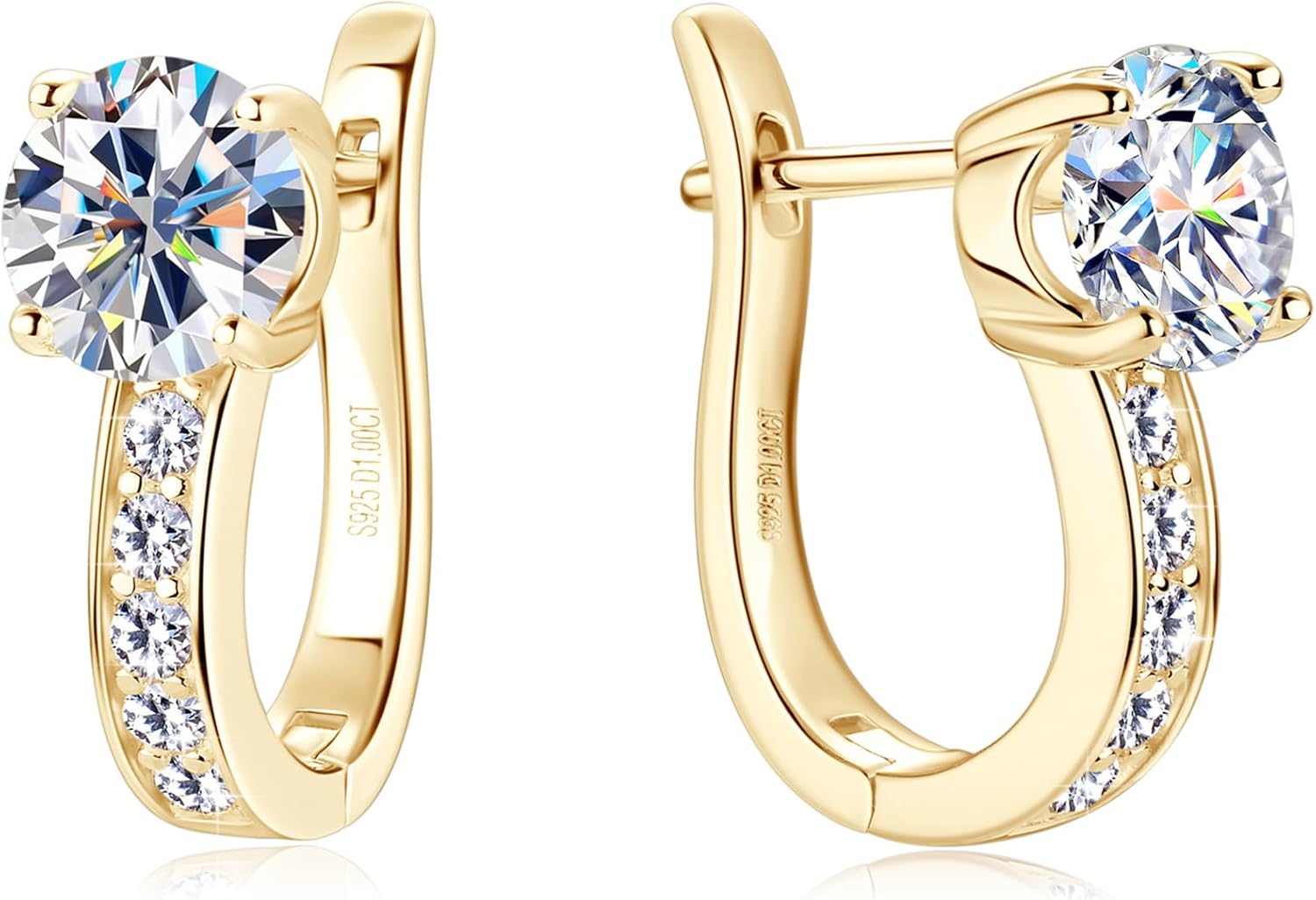 1ct Moissanite Hoop Earrings for Women D Color VVS1 Clarity 925 Sterling Silver U-Shaped Hoop Earring with GRA Certificate Birthday Christmas Jewelry Gifts