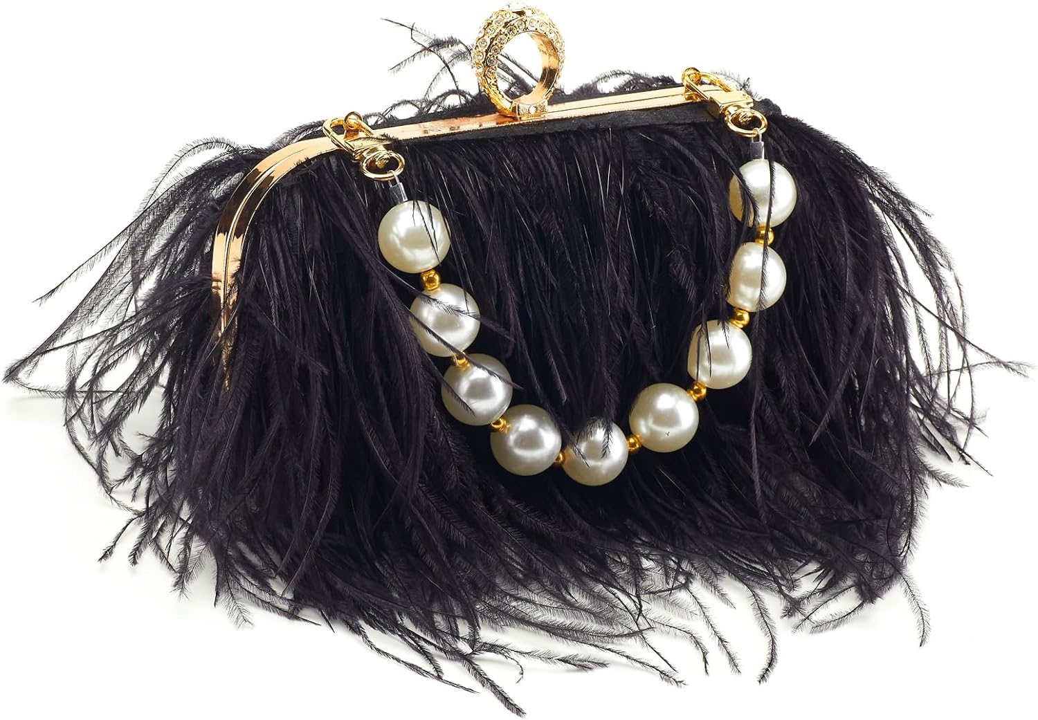 Women Pure Natural Ostrich Feather Fluffy Evening Clutch Purse Suitable for Party,Wedding,Tea Party Clutch Handbag
