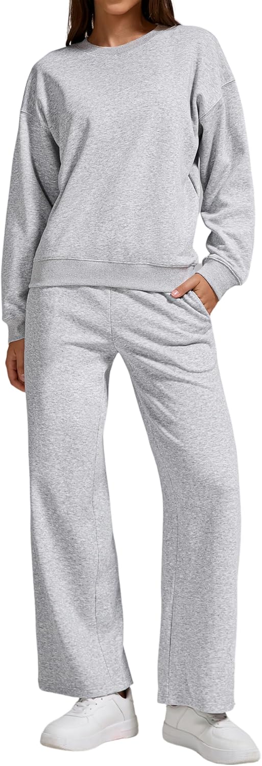 Women’s 2-Piece Oversized Sweatshirt and Jogger Sweatpants Tracksuit Set - Cozy Fall/Winter Casual Outfit with Pockets