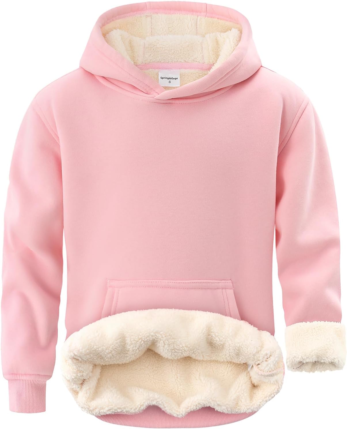 Spring&Gege Boys Girls Fleece Sherpa Lined Hoodie Kids Winter Warm Pullover Hooded Sweatshirts