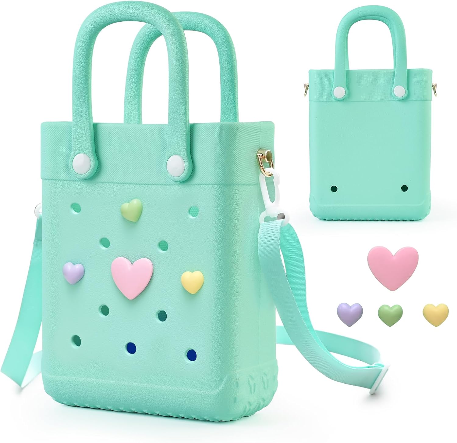 Mini Rubber Tote Bag with 4 Resin Charms Mini Crossbody X-Small Rubber Beach Bag