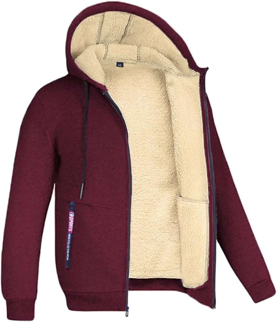 Kolongvangie Men's Fleece Jackets Sherpa Lined Sweatshirt Zip Up Hoodie Warm Coat Brushed Winter Jacket