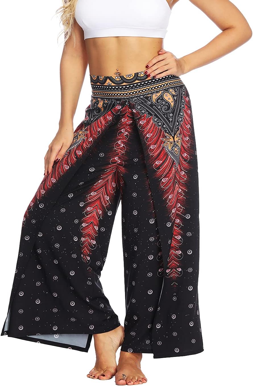 Plustrong Womens Slit Wide Leg Pants Casual Hippie Beach Boho Pilate Flowy Palazzo Yoga Pants