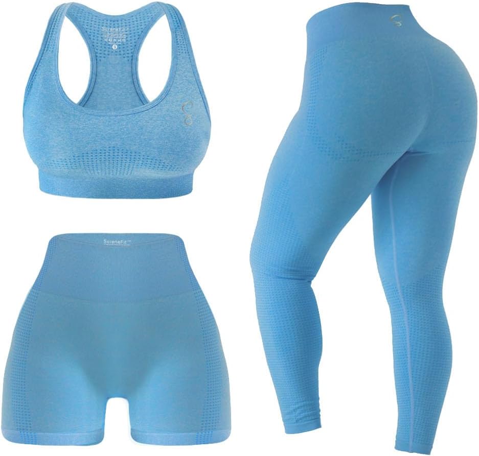 3 Piece Workout Sets For Women Seamless High Waisted Matching Exercise Leggings Shorts and Sports Bra Active Set