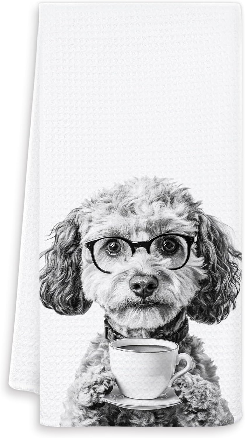 Funny Poodle Kitchen Towels, Poodle Gifts for Women Dish Tea Towels, Black and White Dog Lovers Owner Gifts Hand Towel for Kitchen, Coffee Bar Station Decor, 16x24 Inch