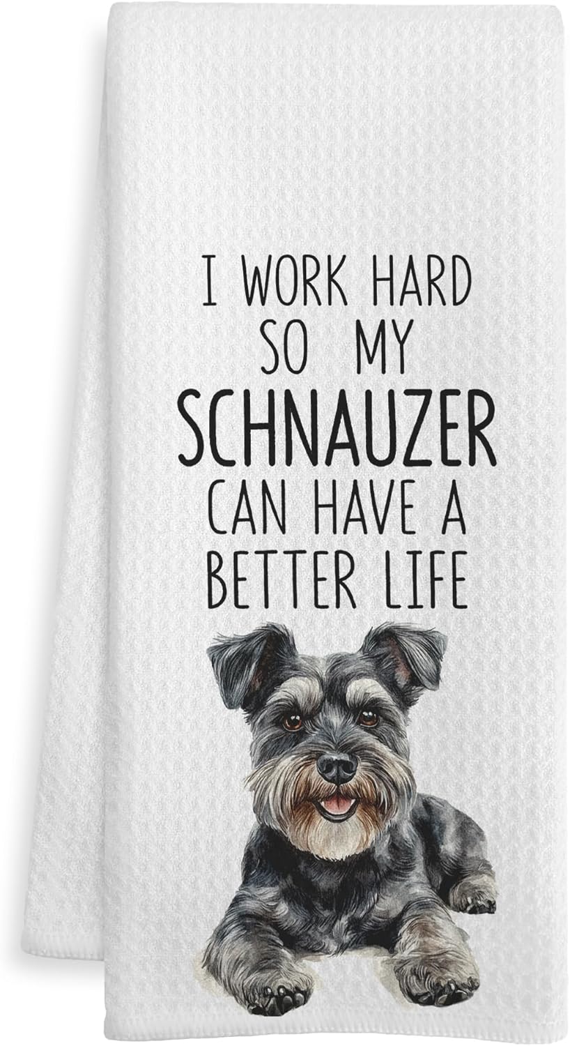 Funny Schnauzer Gifts Kitchen Towels, Schnauzer Gifts for Women Men Dish Tea Towels, Dog Lovers Gifts Decorative Hand Towel for Bathroom, Dog Bathroom Decor, 16x24 Inch