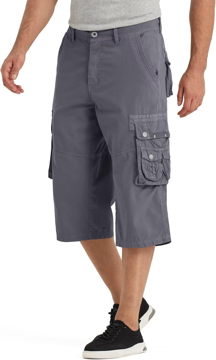 BEST SOUTH 3/4 Capri Long Cargo Shorts for Men Below Knee 18 Inches Pants Casual Hiking Work Outdoor with Pockets