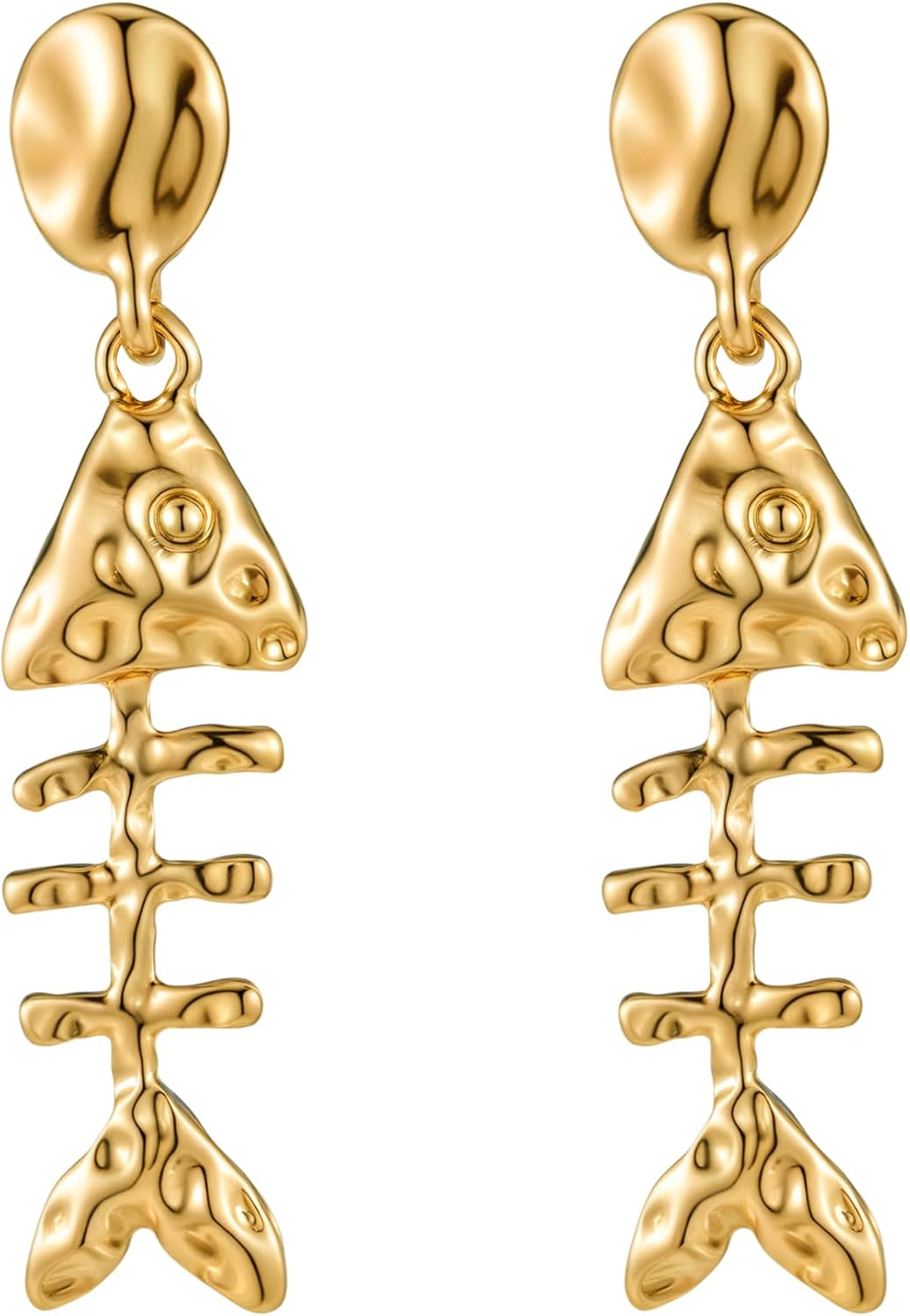 Gold Fish Hoop Earrings for Women Summer Beach Earrings Vacation Jewelry for Tropical