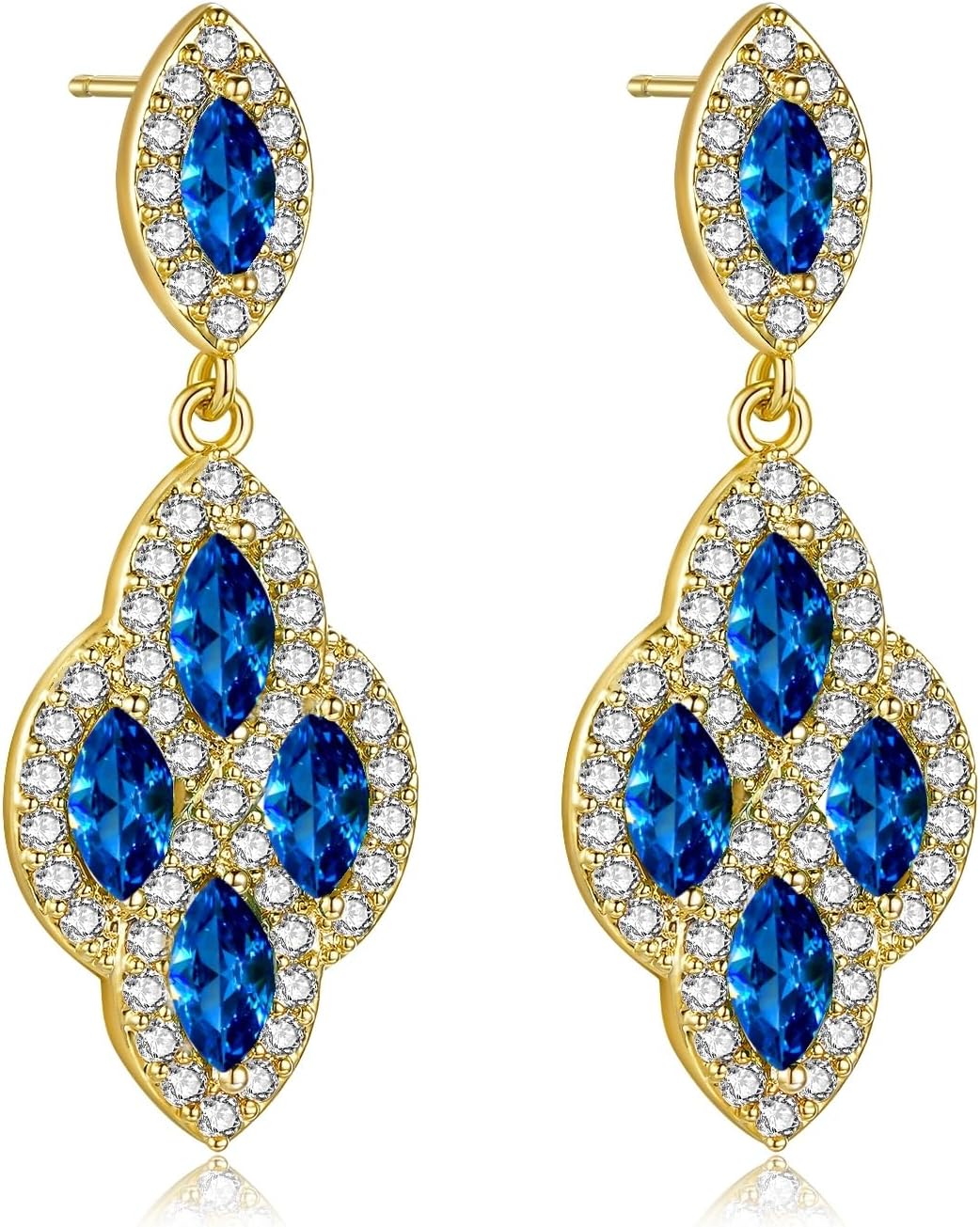 VONSSY Drop Dangle Zircon Earrings Boho Chandelier Rhinestone Crystal Gemstone Platinum Gold Plated Silver Post Jewelry Gift for Woman Girlfriend Mom Wife