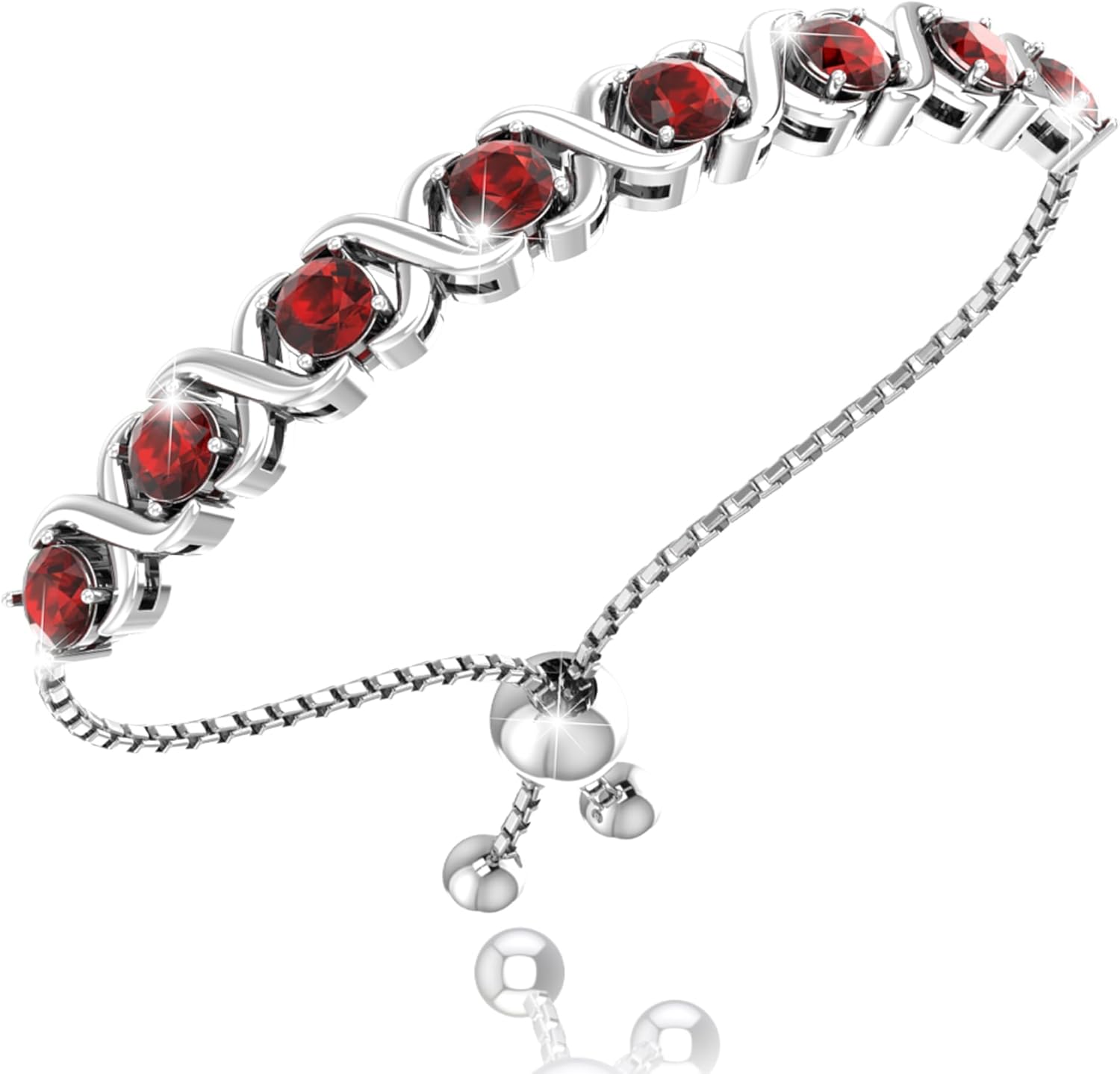 Birthstone Bangle Bracelet for Women Classic Beautiful 925 Sterling Silver Sparkling Gemstone XO Bolo Tennis Bracelet Fine Wrist Jewelry 4.2 Ct, 11"