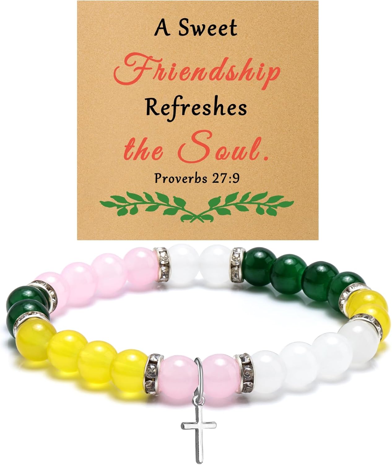 Religious Bible Verse Bracelet for Her Inspirational Confirmation Baptism Gifts Christian Faith Gifts for Women Beaded Bracelet Christian Friendship Gift for Sister Daughter Friend Cross Baptism