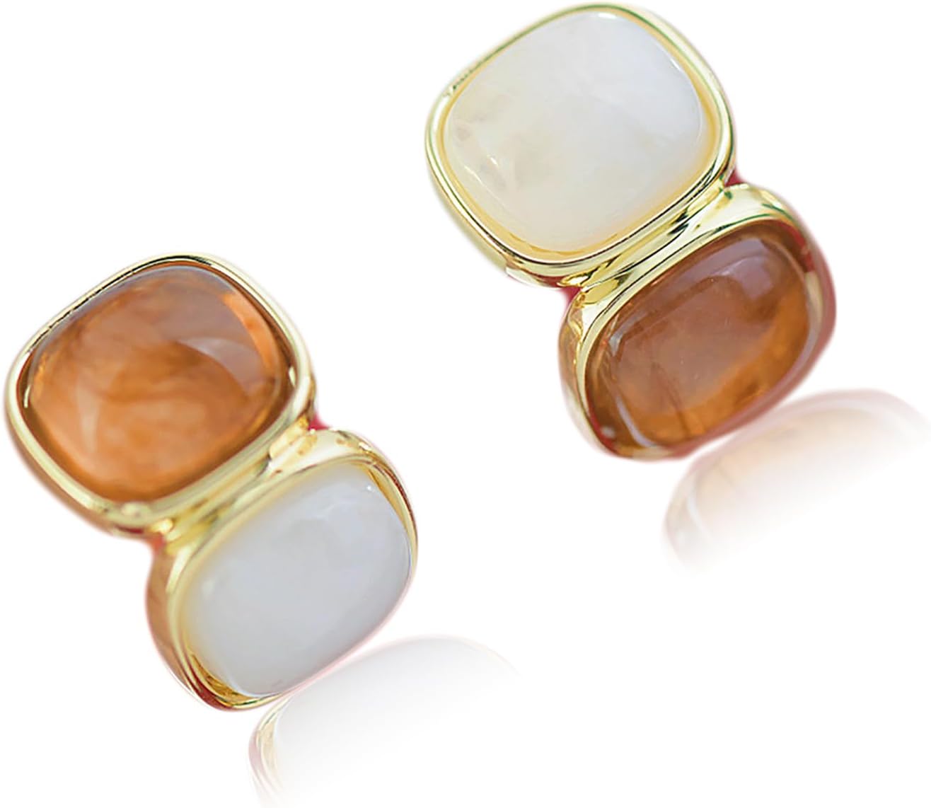 Amber Square Stud Earrings,Vintage Earrings for Women, Anti-Allergy