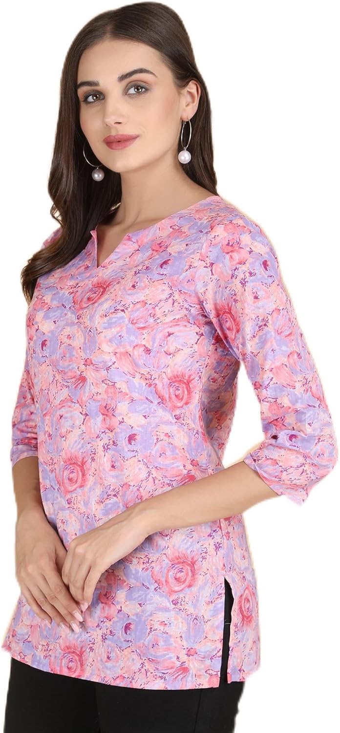 Women's Cotton Printed A-Line Kurti Top | 3/4 Sleeve V-Neck Tunic for Daily & Casual Wear
