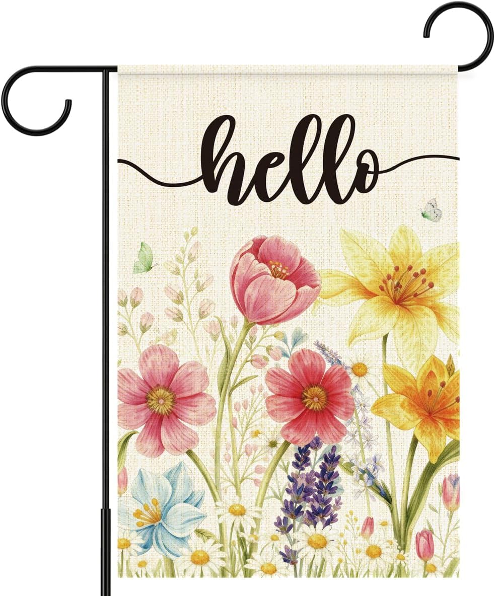 - FABRIC AND WEATHER RESISTENCE: This spring flag is made of 100% machine washable burlap with seams around it that are not easily faded, deformed, or torn to improve durability. Can adapt to the vast majority of seasons, climates, and environments.