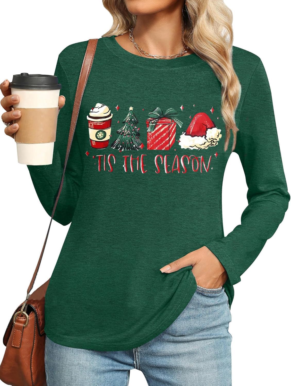 Christmas Shirts for Women Long Sleeve Xmas Graphic T Shirt Top Tis The Season Tree Snowman Print Holiday Shirt Blouse