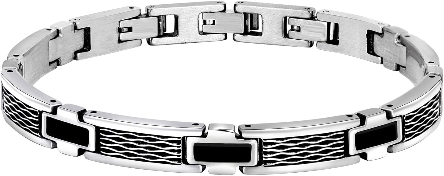 Bracelets for Men, Link Chain Stainless Steel Bracelet for Men, Charm Jewelry for Birthday Annivesary Fathers Day Valentines Christmas, Dad Husband Boyfriend,Casual Trendy Cool Adjustable