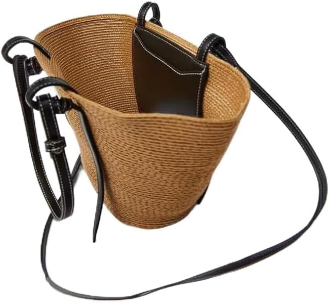 Panier Straw Woven Tote Handbag Vegan Leather Straps Inner Pouch Beach Seaside Raffia Rattan Wicker Basket Large Purse Farmer's Market Shopping Como Modern Hobo Boho Bohemian Western Country Cottage