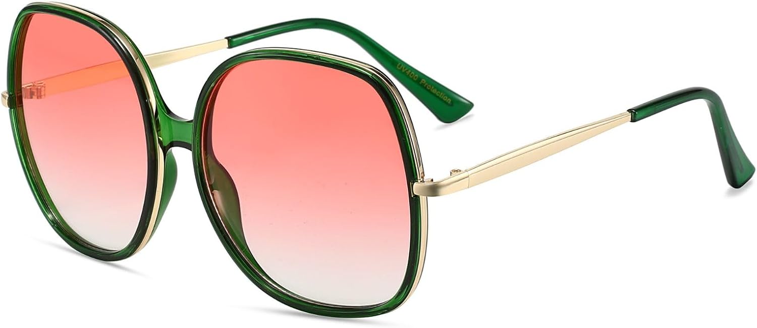 Freckles Mark 70s Super Oversize Square Sunglasses for Women Vintage Rectangular Plastic Frame