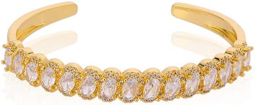 Dainty 14K Yellow Gold & Crystal Open Cuff Bangle for Women, Pave Setting with Natural Oval Crystal, Elegant Open Bangle Bracelet, Stylish Christmas Jewelry Gift, Classic Dress Accessory