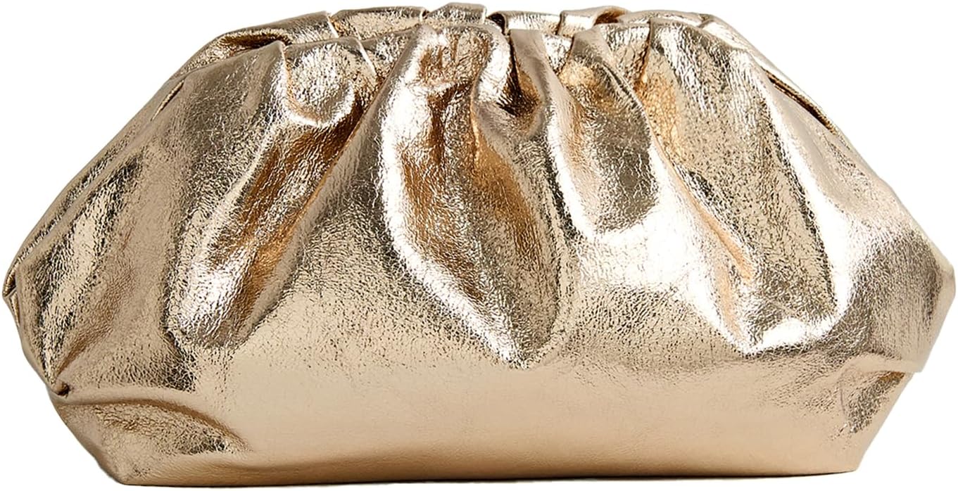 PHILOMENA Dressy Vegan Leather Clutch Purse for Women, Soft Pleated PU Evening Purse for Weddings, Proms