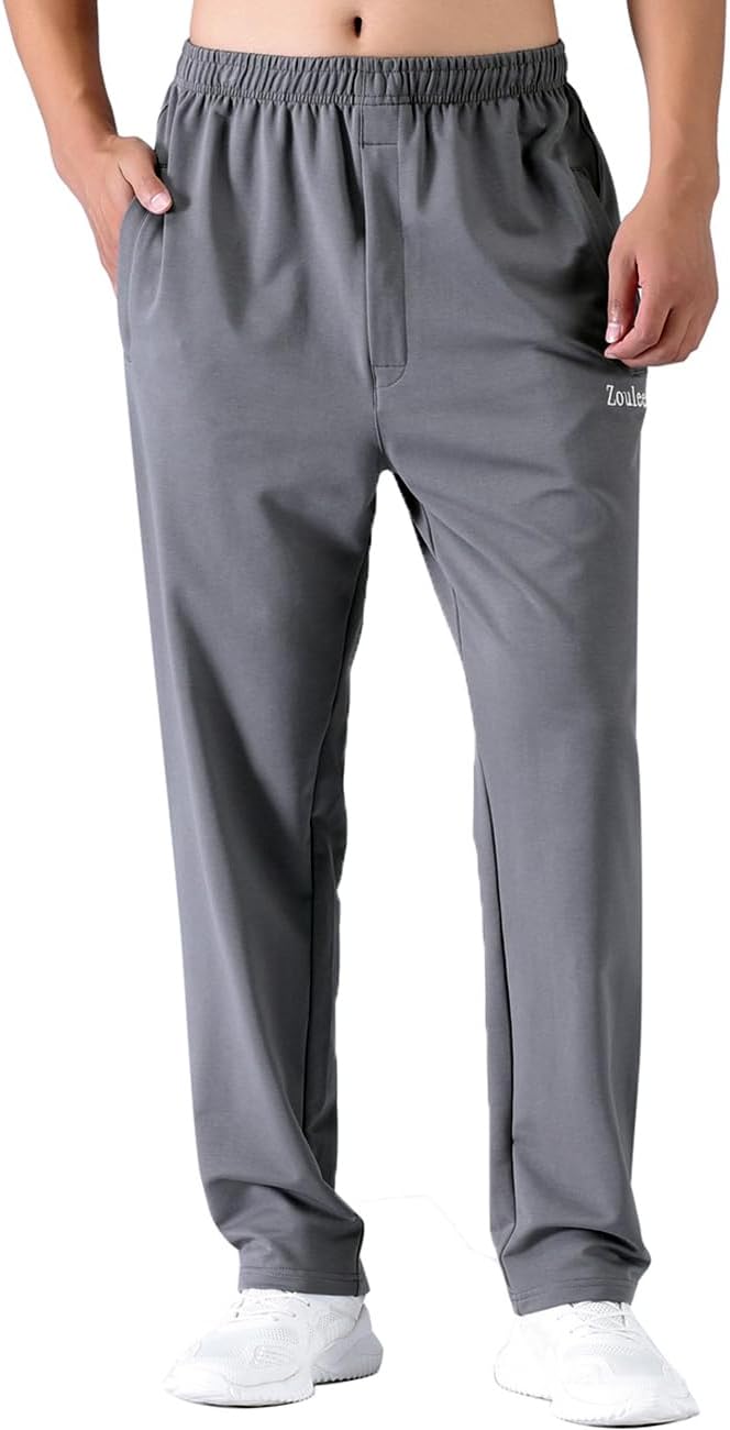Zoulee Men's Casual Cotton Jogger Sweatpants Zipper Front Pants