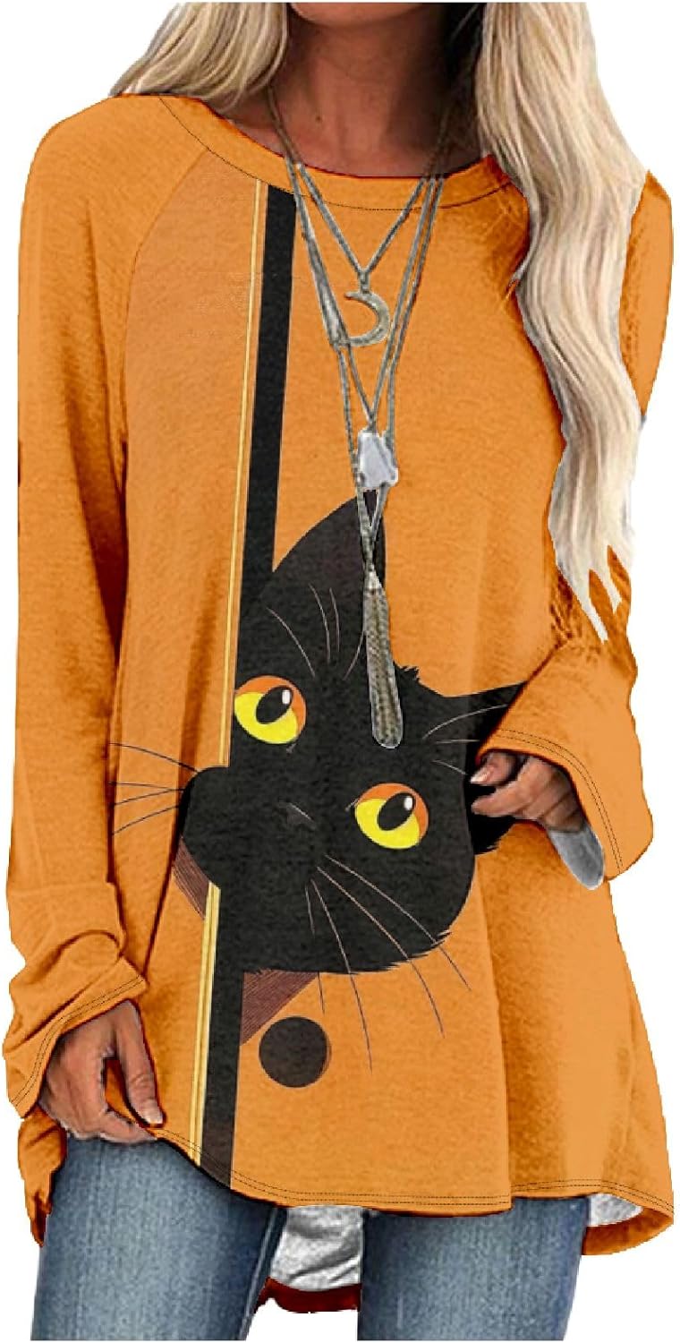 LOAIHA Women's Funny Cat Print Sweatshirt Long Sleeve Pullover Lightweight Hoodie Shirt Cat Sweaters for Women