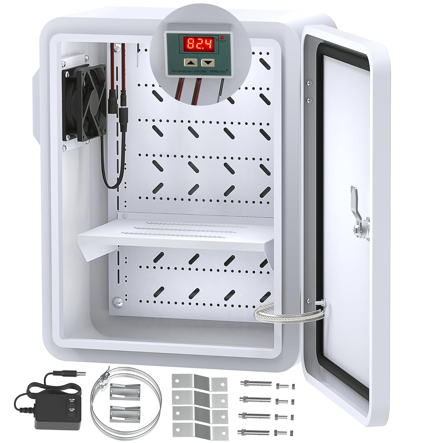 Outdoor Electrical Box with Thermostat and Fan, Precise Temperature Control 0.1°F, IP65 Water Resistant Rating, Galvanized Steel, Aluminum Rear Beam(17.7" x 13.8" x 7.9")