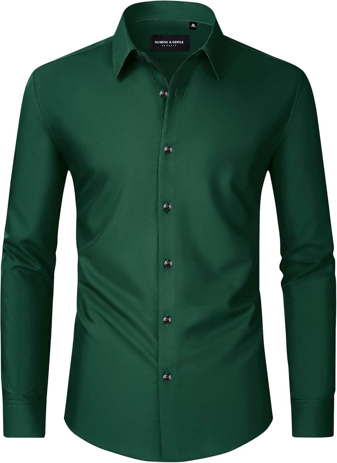 Alimens & Gentle Men's Dress Shirts Long Sleeve Wrinkle Free Stretch Business Casual Wedding Button Down Shirt