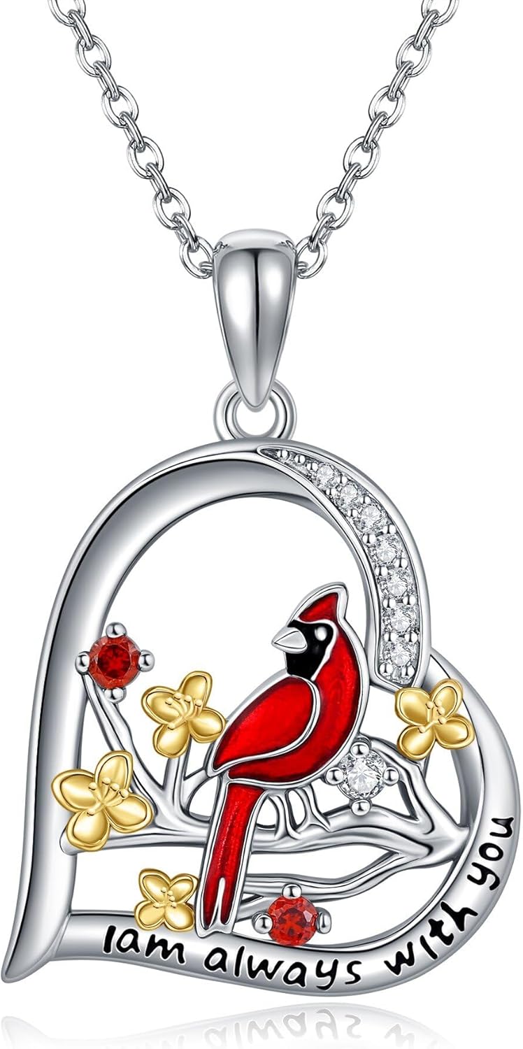 URONE Cardinal Necklace Sterling Silver Red Cardinal Heart Pendant Necklace Bird Jewelry Gifts for Women
