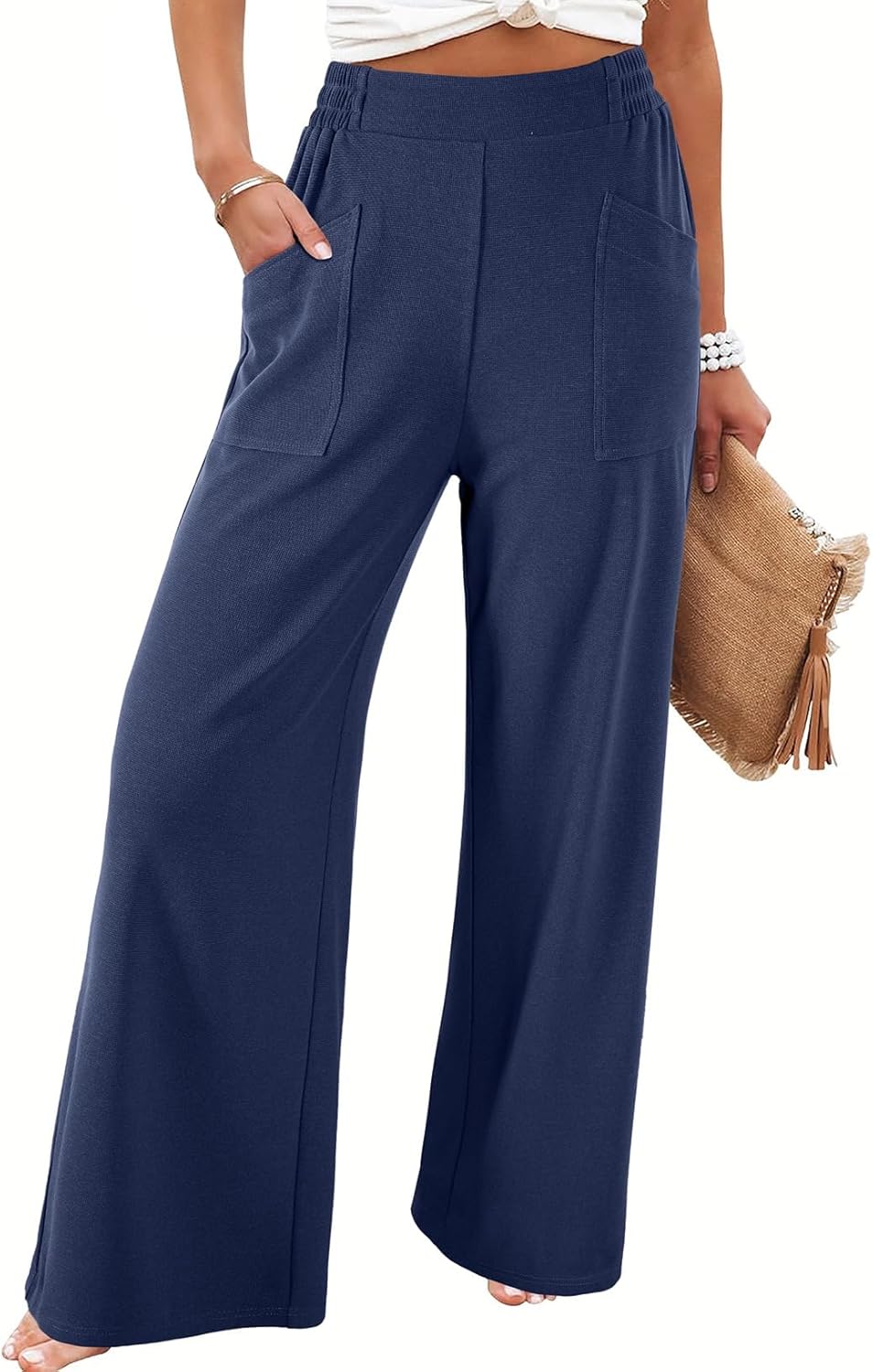 EVALESS Womens Baggy Wide Leg Pants Casual Elastic Waisted Palazzo Harem Pant with Pockets