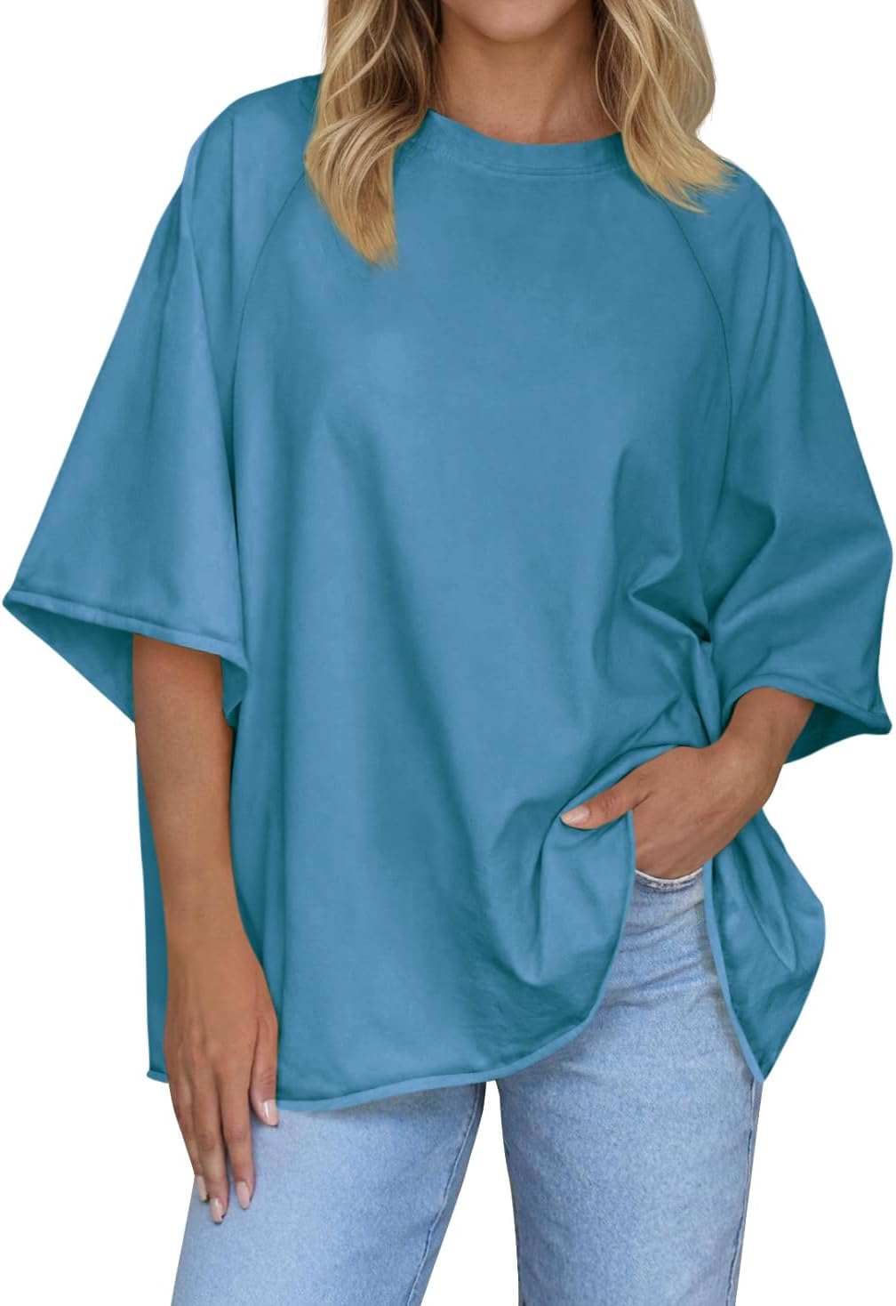 Tankaneo Womens Oversized Half Sleeve T-Shirts Trendy Casual Loose Fit Tops Summer Crew Neck Baggy Shirts