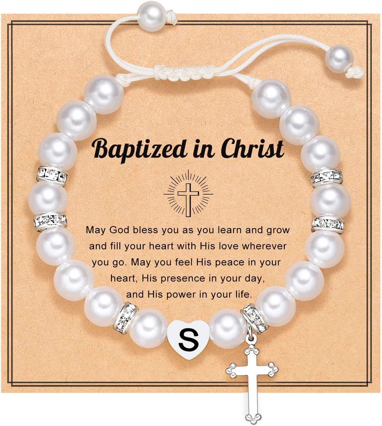 UNGENT THEM Initial Heart Cross Charm Bracelet for Girls, Baptism First Communion Easter Confirmation Gifts for Girls Teens