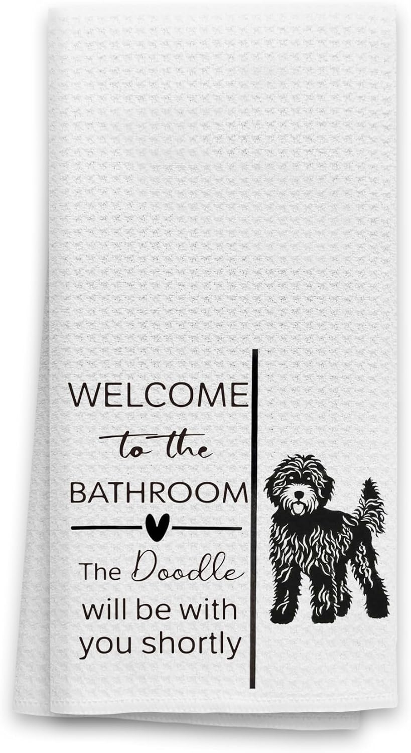 OHSUL Funny Doodle Bathroom Decor Hand Towels, Goldendoodle Gifts for Dog Lovers, Dog Mom Dad Gifts Dish Tea Towels, Funny Dogs Decorative Hand Dish Towel for Bathroom Toilet 16x24 Inch