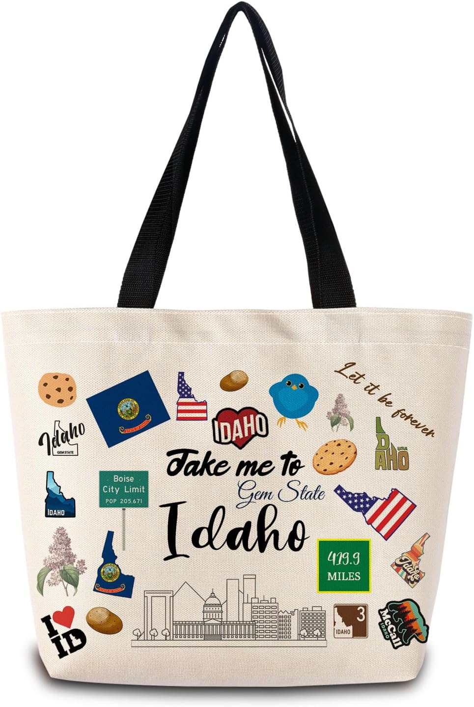 Take Me To Idaho Tote Bag Reusable Grocery Bags Aesthetic Shopping Shoulder Handbag with Interior Pocket Lightweight & Washable Stylish Idaho Travel Present for Women