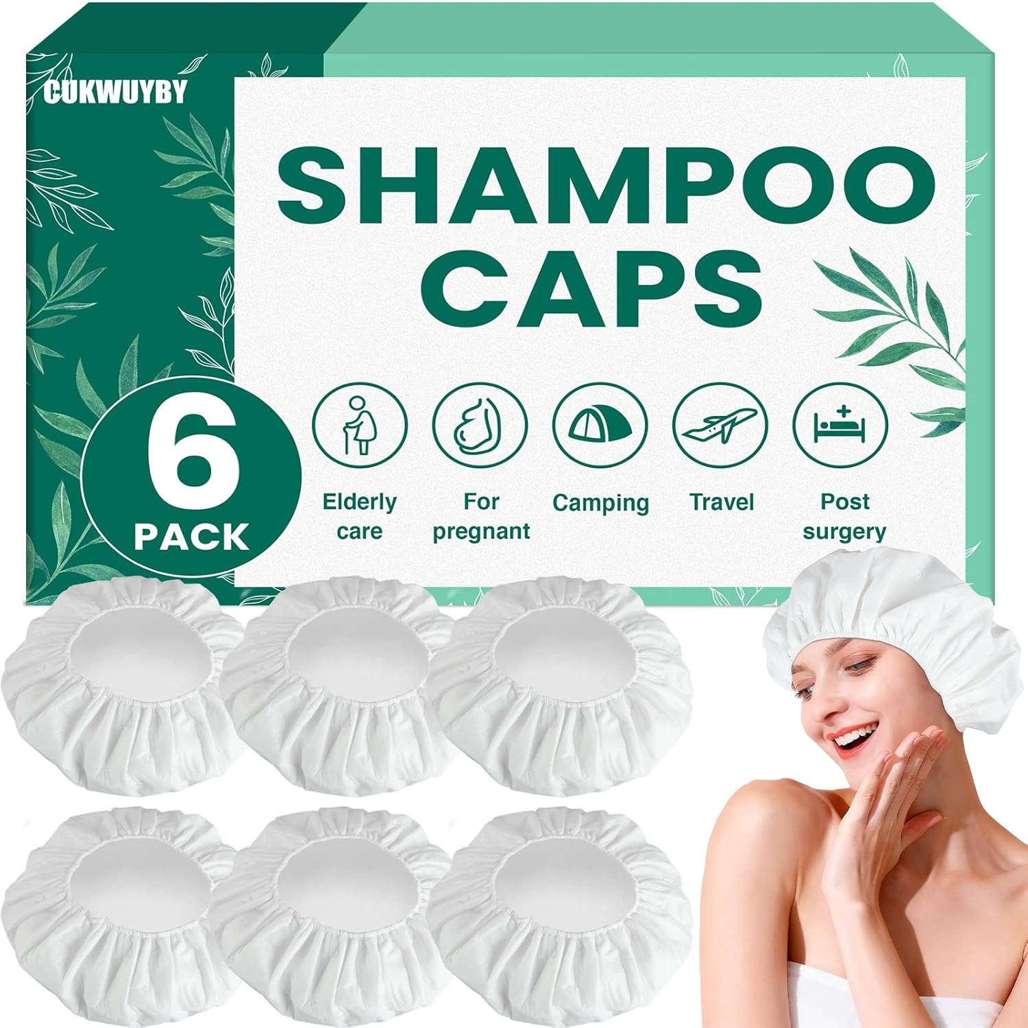 WUYUAN 6 Pack Shampoo Caps No Rinse Waterless Shampoo Caps Hair Wash Caps Shampoo and Condition Cap for Bedridden Patients, Elderly, Adults