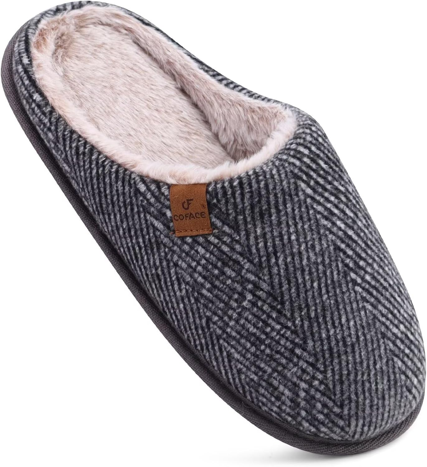 COFACE Womens Cozy Memory Foam Scuff Slippers Ladies Fuzzy Warm Slip On House Shoes With Arch Support, Indoor Outdoor Rubber Sole
